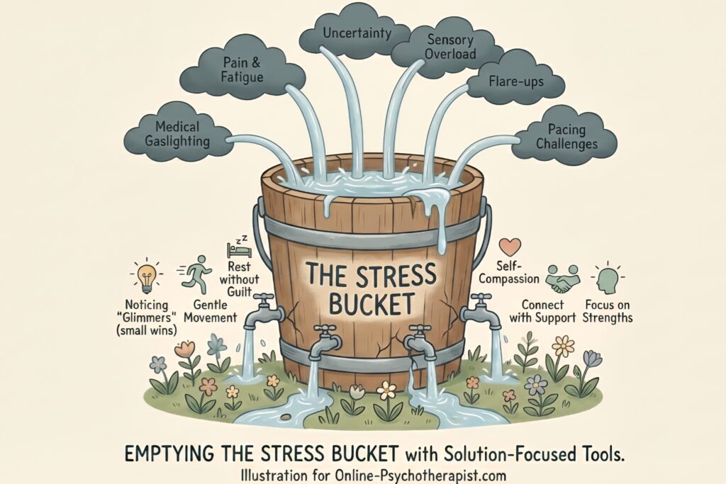 In my practice, I often talk about the “Stress Bucket.” When you live with chronic pain, subluxations, and the unpredictability of EDS, your bucket can feel like it’s overflowing before you’ve even had your morning tea!
